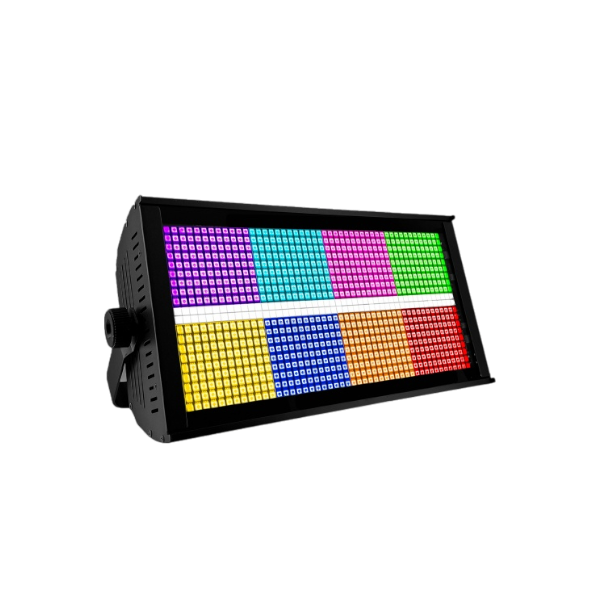 El STOMP es un potente estrobo LED diseñado para iluminar cualquier espectáculo con efectos dinámicos e intensos. Con 864 LEDs tricolores 5050 + 96 LEDs blancos, ofrece una combinación de colores vibrante y un flash impactante, ideal para escenarios, conciertos y eventos en vivo.