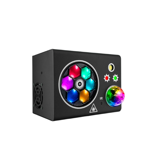 El Thunder es un potente multiefecto que combina iluminación LED, láser y estrobo en un solo dispositivo compacto. Diseñado para eventos, fiestas, discotecas y espectáculos, este equipo ofrece una combinación de efectos dinámicos, patrones vibrantes y destellos intensos, creando una atmósfera impactante en cualquier espacio.