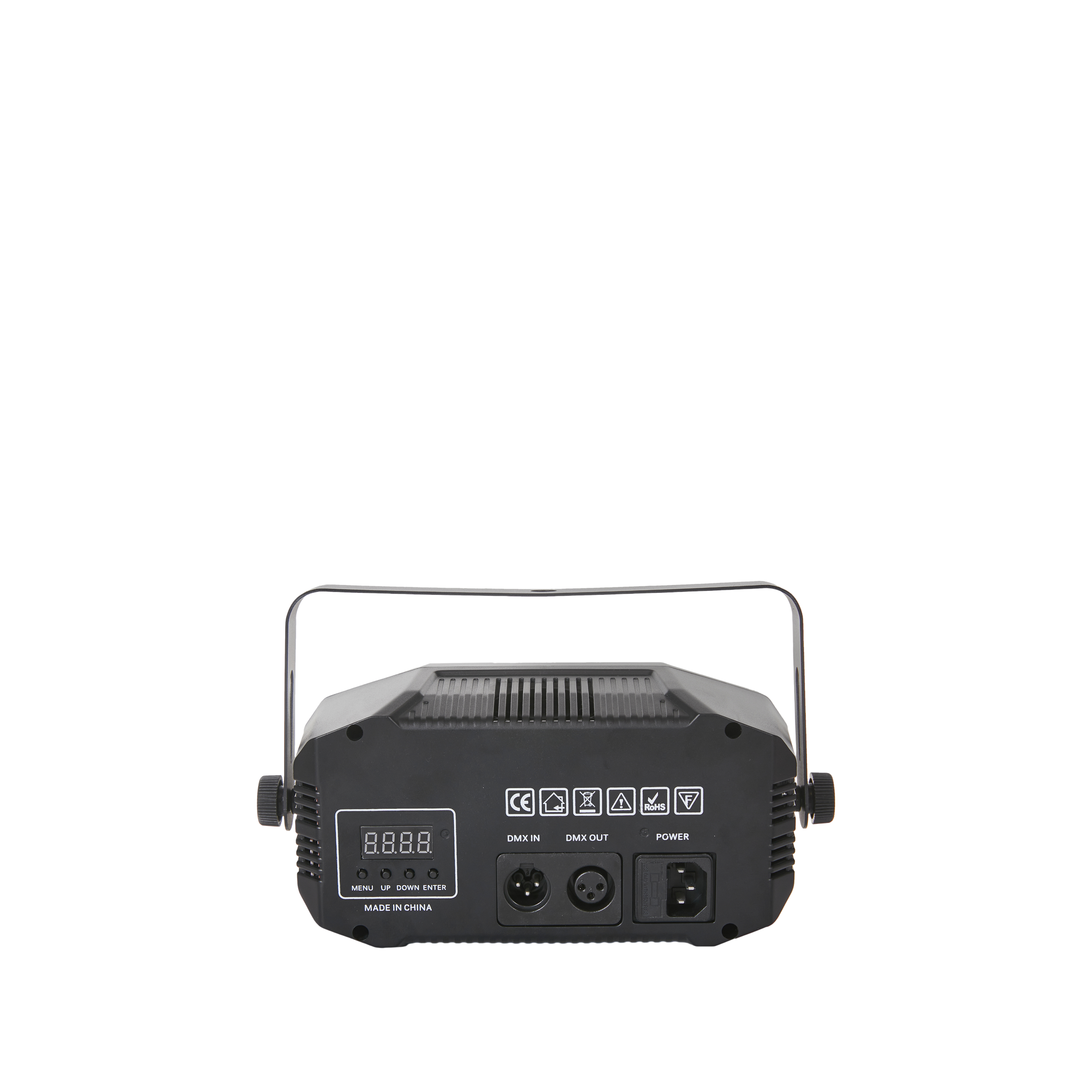 El equipo permite operar de manera autónoma en modo automático o control por sonido, sincronizarse en configuraciones master/slave o integrarse a sistemas profesionales mediante DMX512, brindando control preciso sobre colores, rotaciones, velocidad de efectos, strobes y láseres. Su interfaz con display LED y botones de control facilita una configuración rápida e intuitiva, incluso en entornos de uso intensivo.